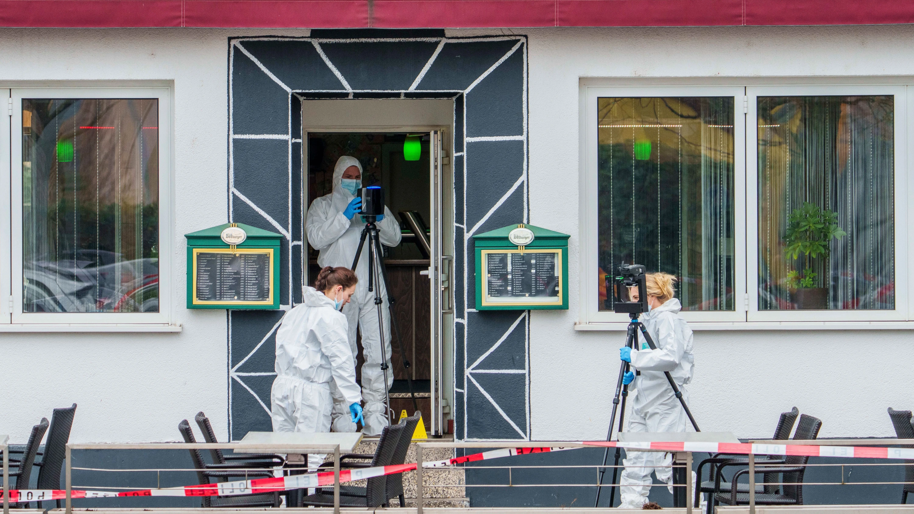 Zwei Männer sind in der Nacht zum Dienstag in einem Lokal in Raunheim erschossen worden. Die Täter sind auf der Flucht, das Motiv ist unklar.
